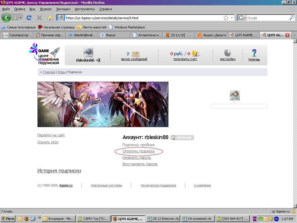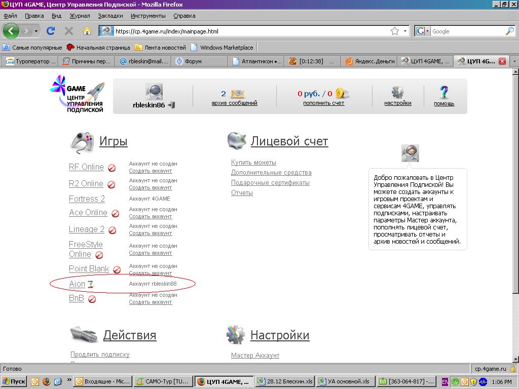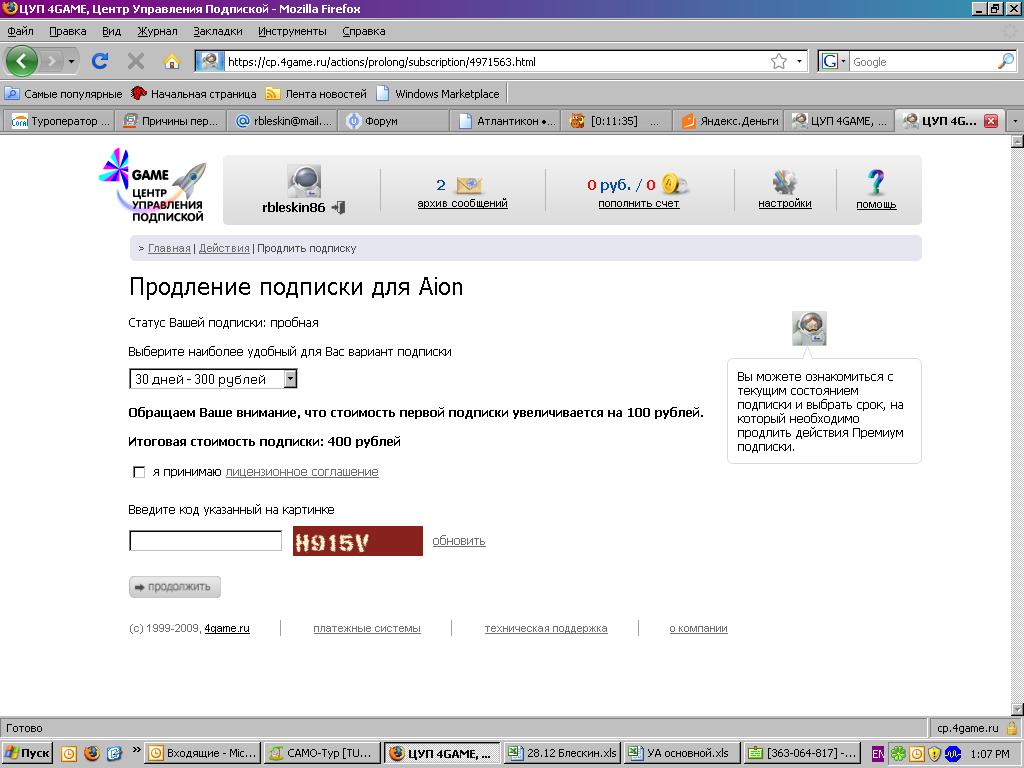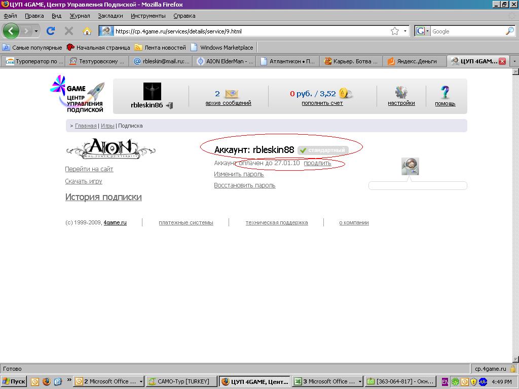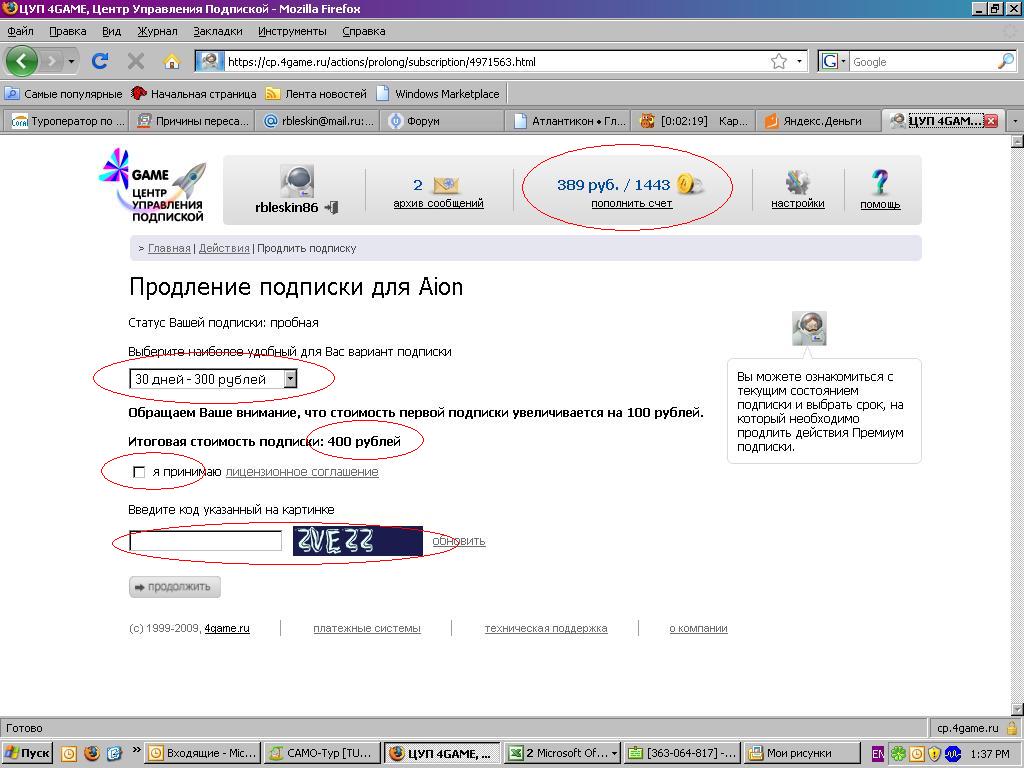 | шаг первый: оплачивать как я понял придется через личный кабинет с сайта, логин и пароль вводите как на вашем аккаунте! Добавлено (28.12.2009, 13:15) --------------------------------------------- шаг два: после входа в личный кабинет вылетает след. окно где нужно выбрать саму игру т.е "Айон"