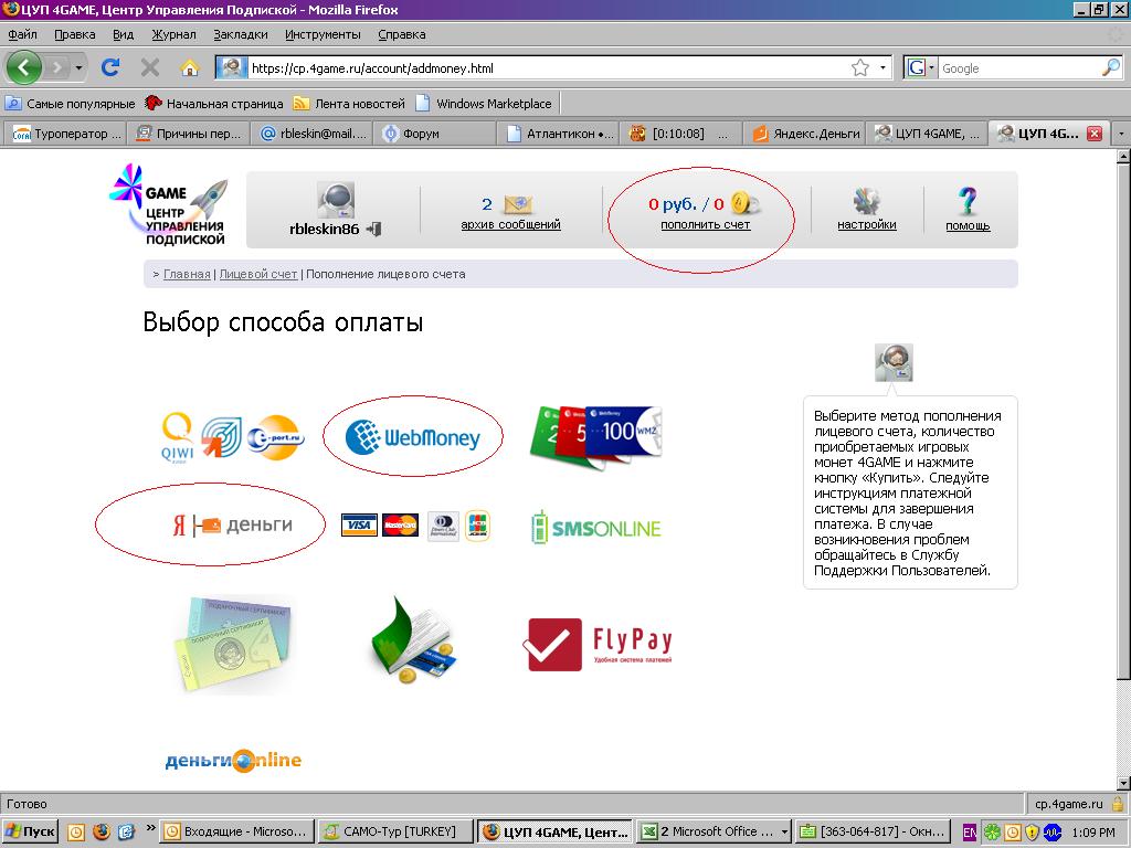 | Вот как то так это должно выглядеть в конечном итоге уже с переводом денег: Добавлено (28.12.2009, 13:59) --------------------------------------------- Есть еще вот такая ссылка https://cp.4game.ru/index/support.html?&did= Добавлено (28.12.2009, 16:18) --------------------------------------------- Что касается оплаты не из России схема аналогична: создаете кошелек Веб Мани, Яндекс Деньги и т.д. и через личный кабинет с сайта производите оплату по выше предоставленной схеме.